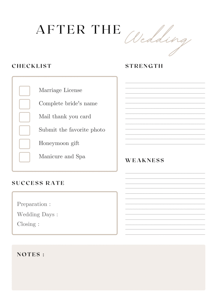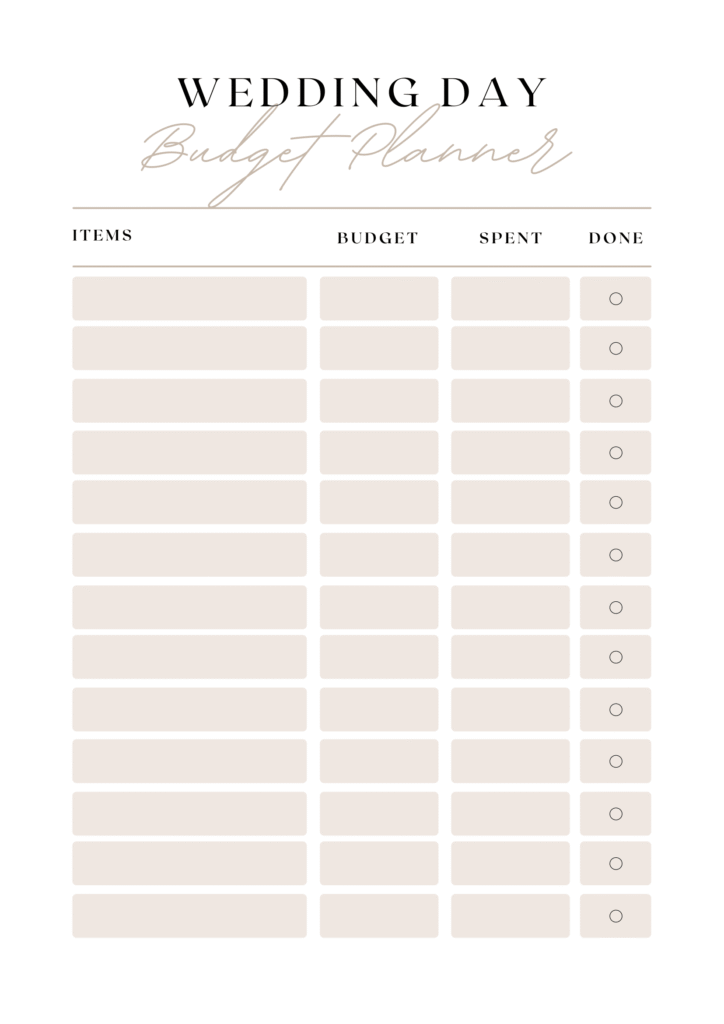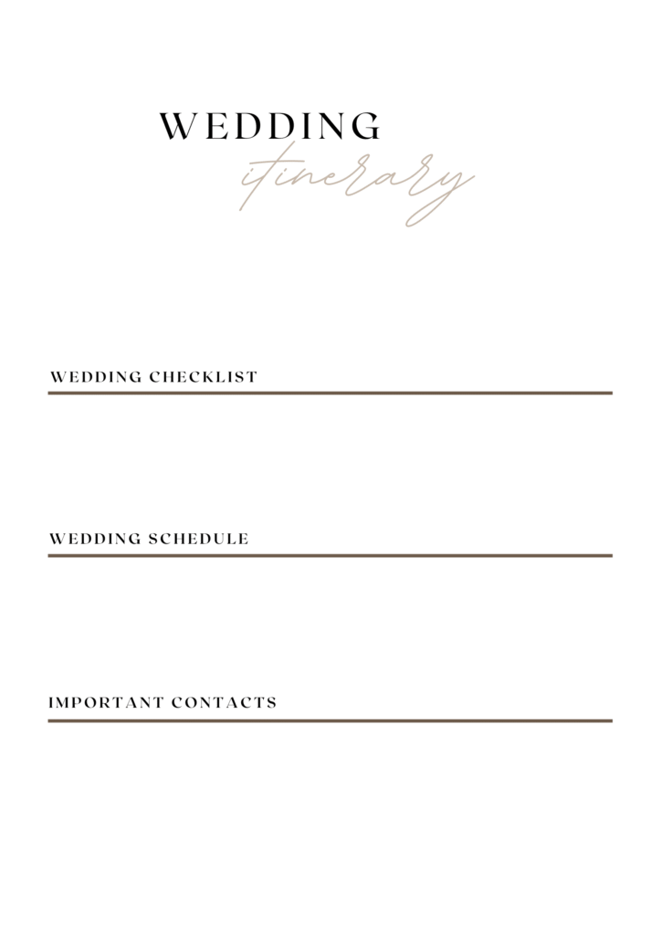 Our Wedding Planner Printable includes a comprehensive set of printable pages designed to help you manage your wedding budget, itinerary, and timeline. It covers essential aspects of wedding planning to ensure a smooth and organized process.